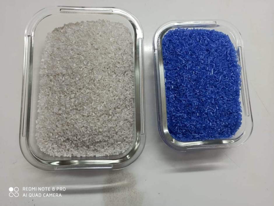 Firmamızda fotoğrafta görülebileceği gibi PP Clarifier'ın (Şeffaflaştırıcı) mavi ve şeffaf tonlu olarak 2 çeşidi bulunmaktadır.